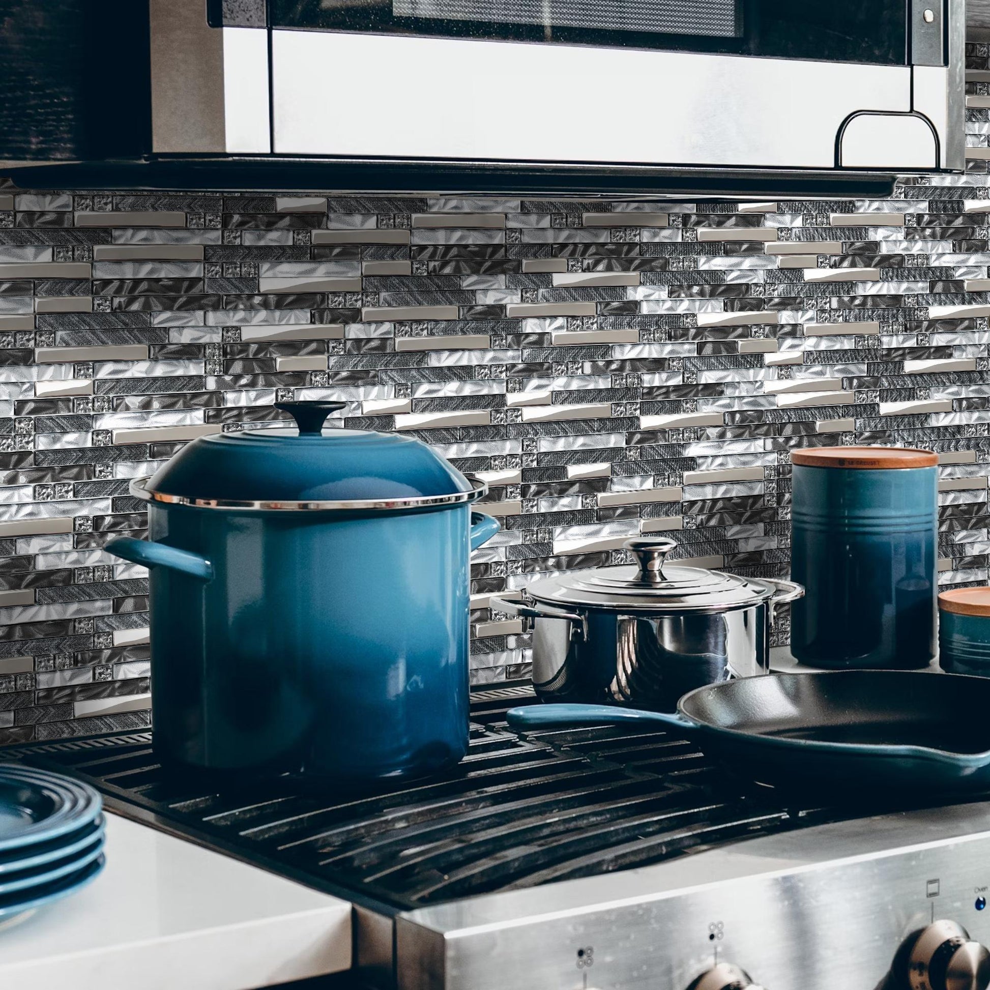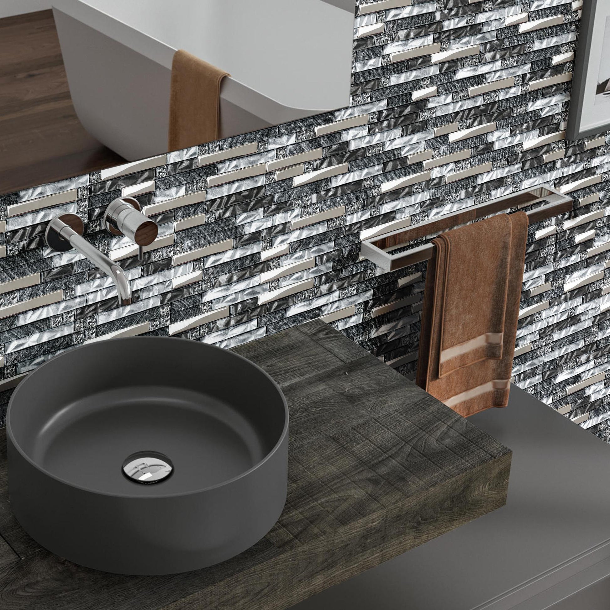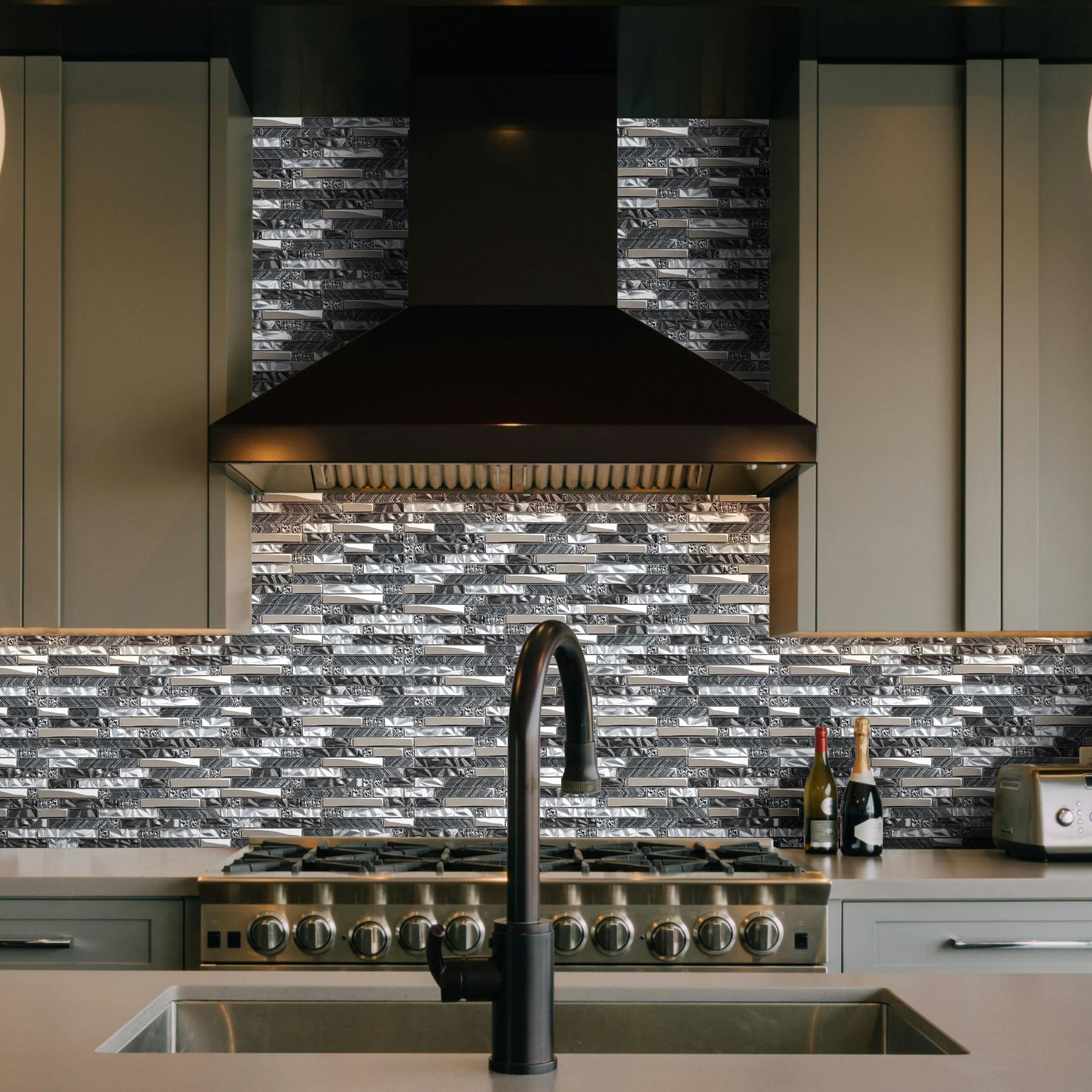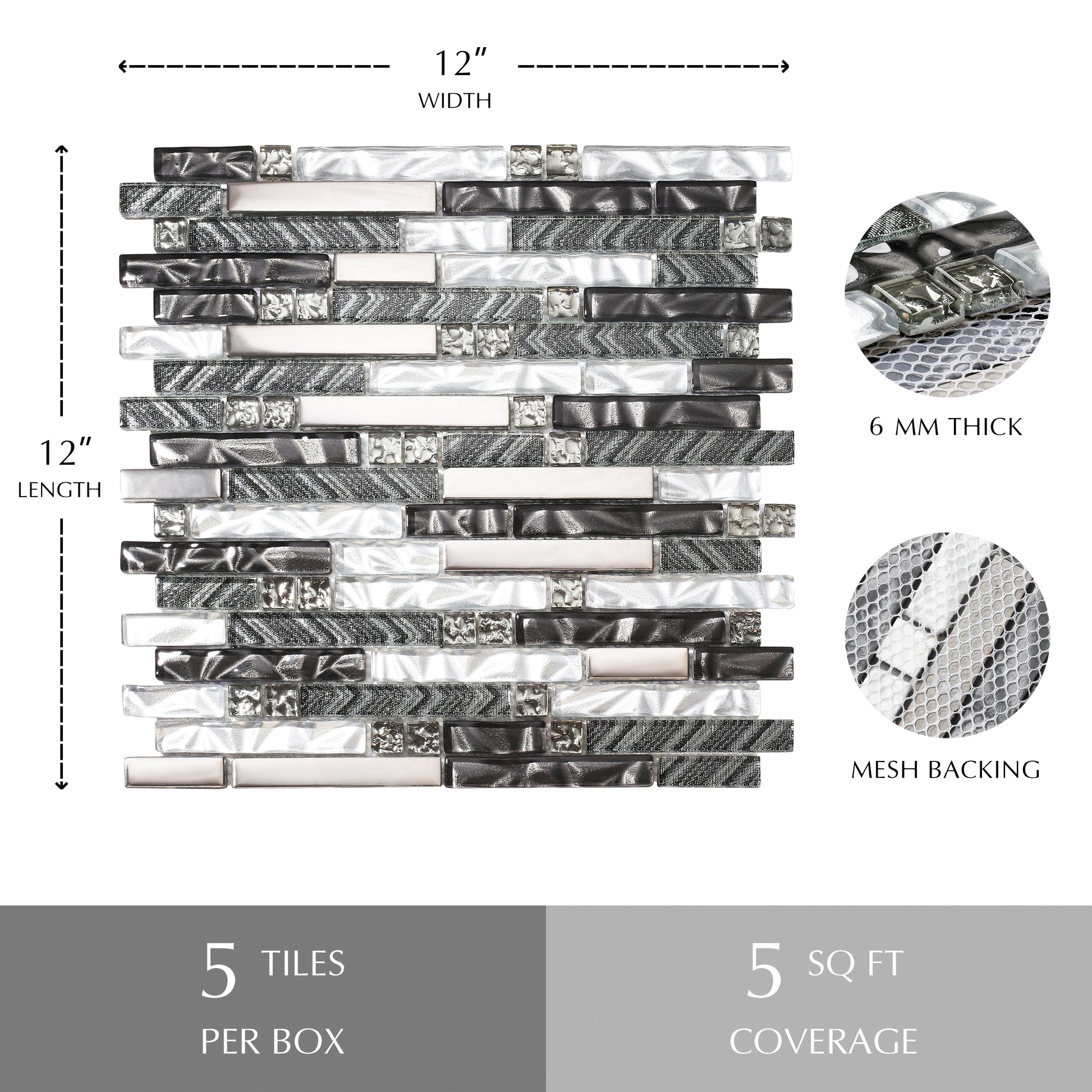 Black Silver Subway Glass Mosaic Tiles for Kitchen Backsplash Bathroom Wall (Pack of 5)
