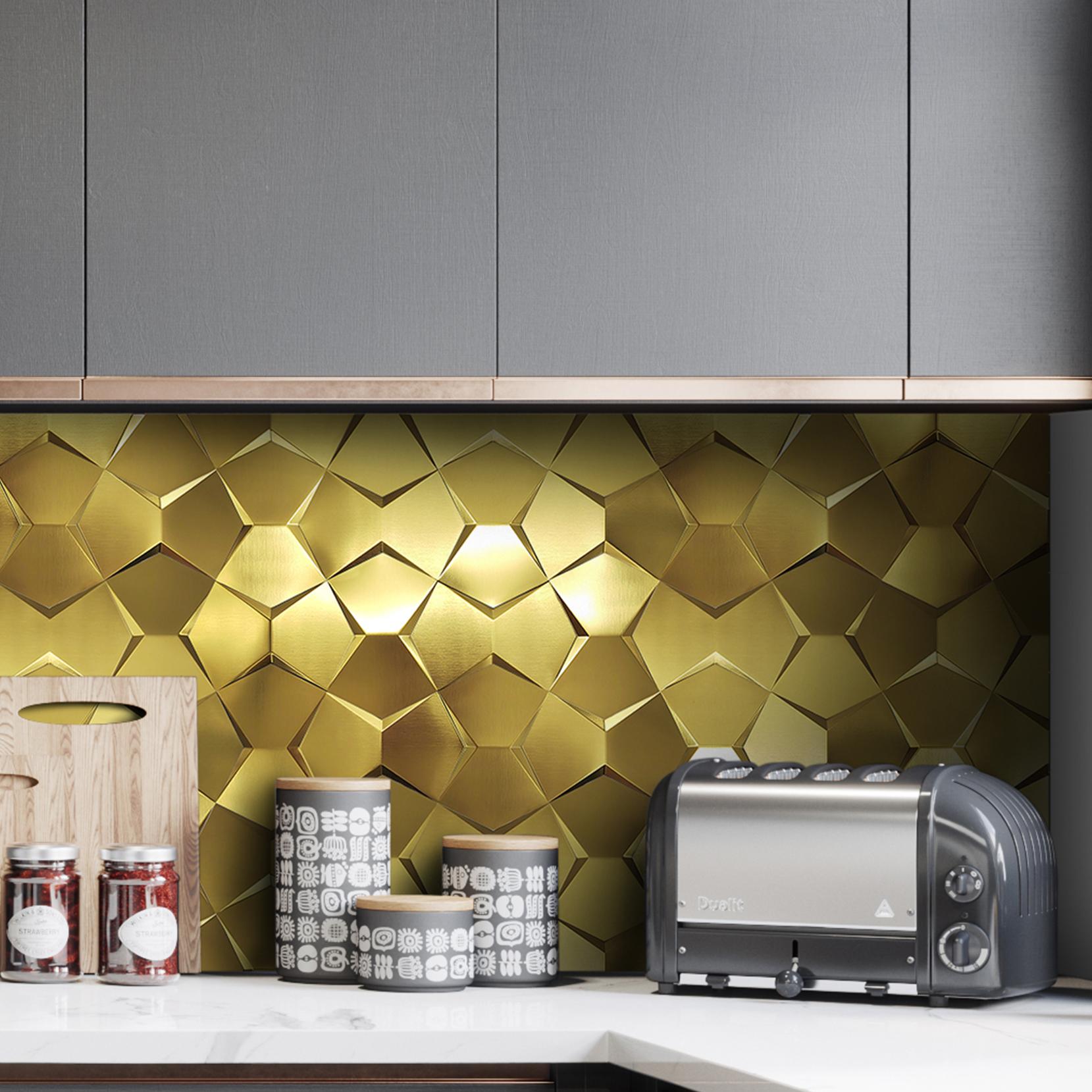 - 5 sheets tiles in a box, premium brushed gold metal finish.
